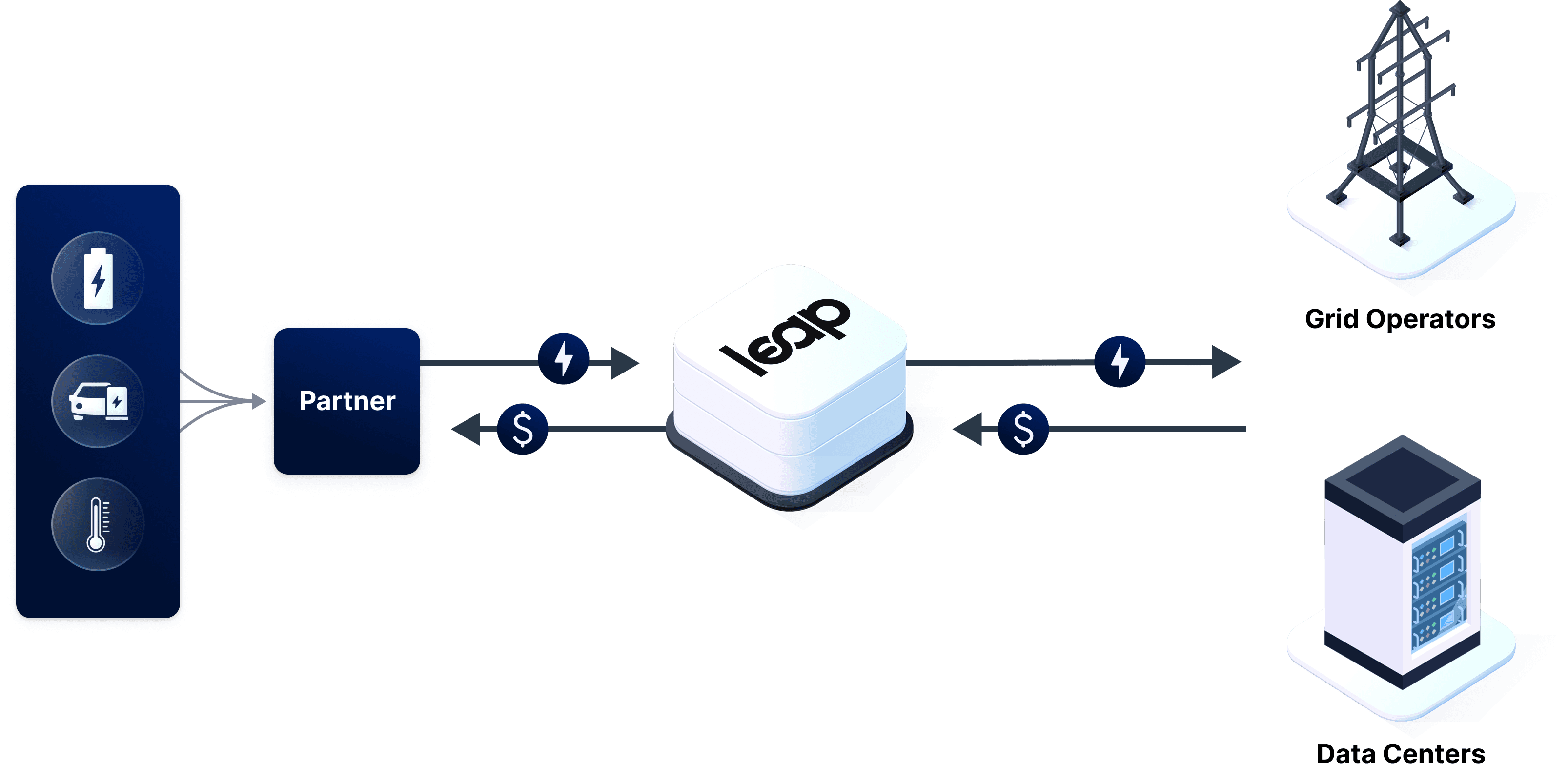 Leap aggregates DERs in the local distribution area—either existing resources or newly deployed assets.